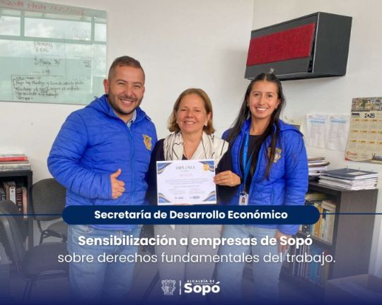 Nuestra Oficina de Empleo adelanta trabajos de sensibilización en empresas del municipio de Sopó, enfocados en el cumplimiento de los derechos fundamentales y la promoción del trabajo decente, con el objetivo de garantizar el bienestar y mejorar las condiciones de vida de nuestra comunidad en sus entornos laborales.
